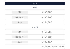 リップのアートメイクをお受けになったあとのリップのヒアルロン酸に関しては色味やシェイプの評価が正しく出来る1ヶ月後からの注入をおすすめします。