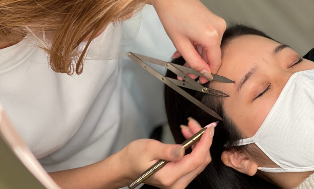 アートメイクの肝はデッサン能力です。お伺いしたご希望のデザインをもとに、筋肉の走行や骨格を考慮しながらお客様のなりたい眉を体現いたします。